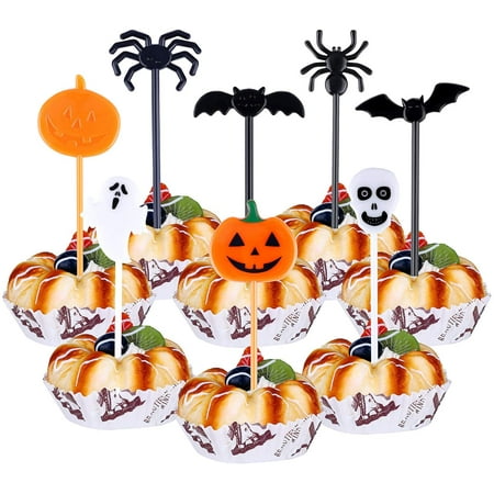 80 Pieces Halloween Plastic Picks Cupcake Toppers Decorations With Pumpkin Ghost Spider Bat Design For Halloween Party Themed Party Walmart Canada